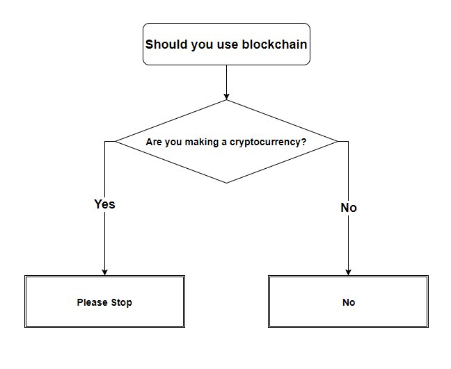 In 10 years when your blockchain is no longer supported by the developers and your new team has no idea how to manage it, it's showing it's age, it's breaking, you're going to be envious of people with those boring old databases.